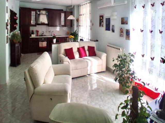 Al piano secondo in palazzina trifamiliare degli anni '90, in ottime condizioni, appartamento composto da cucina aperta sul soggiorno, entrambe con balcone, due camere da letto matrimoniali, bagno con balcone.